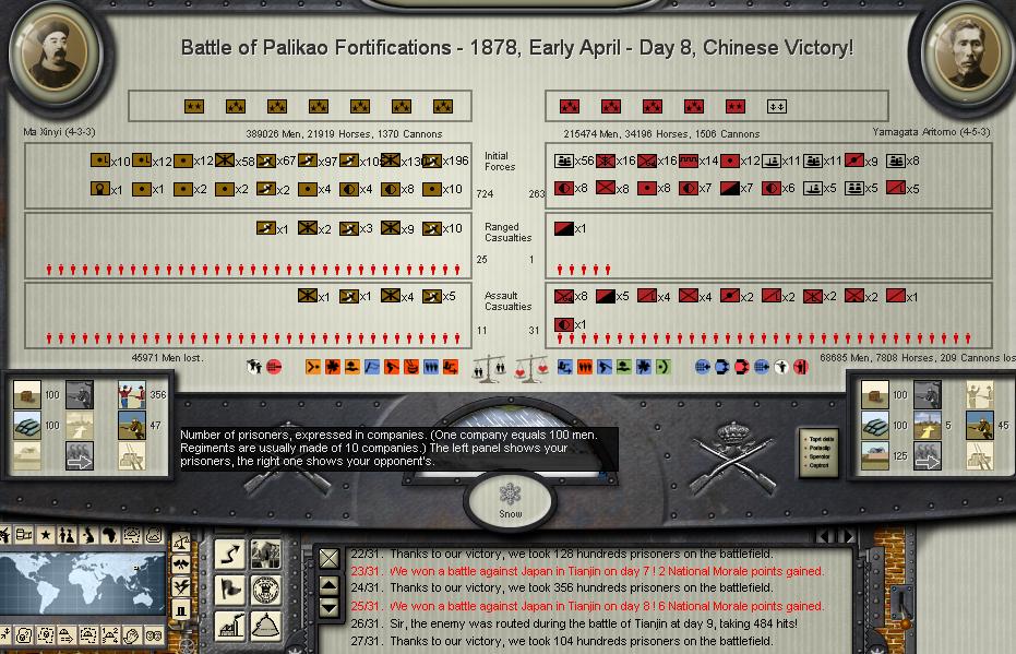 Kensai wrote:Aritomo, the highest Field Marshal of the Japanese Imperial Army has indeed landed on mainland China, but his contribution in this battle was simply that of Commander-in-Chief and (possibly) marching-at-the-sound-of-guns.