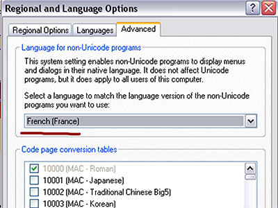 Try to switch language for non-unicode programs in Windows/regional Settings/advance to French...