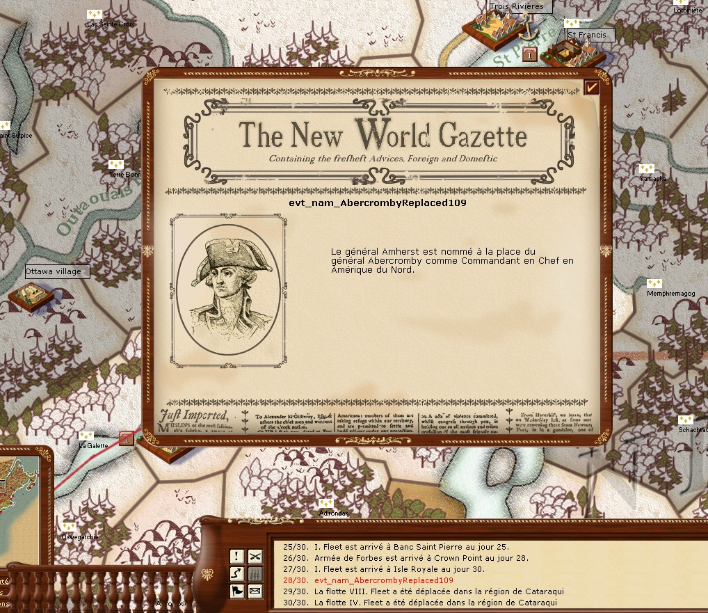 Déjà un petit pb d'affichage dans le journal , et puis c'est pas que je le regrette le Abercromby (celui qui m'as perdu tout mes renforts de 1757 à Louisbourg...