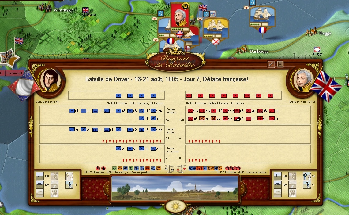 La tête de pont est établie à Douvres, la 3e division de Legrand prépare l'assaut tandis que le corps de Soult prend ses quartiers dans la campagne anglaise.