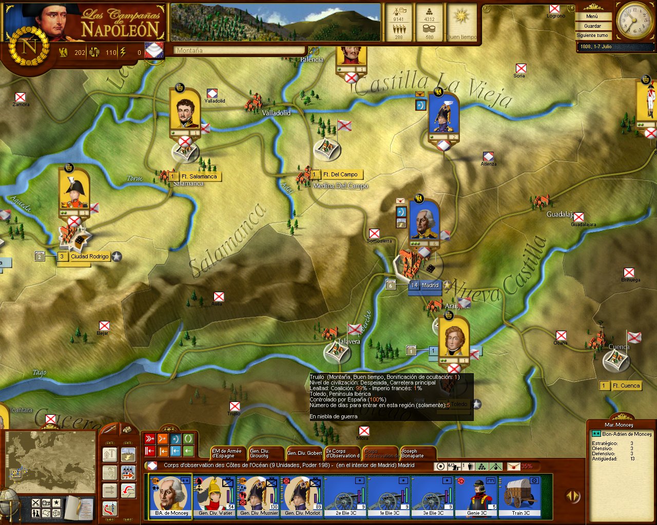 Check the screen: inside Madrid there are a lot of French tstacks but no dots under Madrid's name