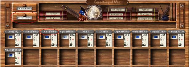 Another example might be a Striker Division, defined as a division which would generally work independently of a corps or army. Such a division might include 5 artillery units: a Columbiad, a 20 lb Parrot, two 10 lb Parrots, and a 12 lbr. I would further recommend the inclusion of more Cav than the usual 1; at least two, and possibly as many as four. I also believe that this division's infantry should consist entirely of what I call "Rifle" Infantry: Infantry with a range of 4. Any availible Elite infantry (with its cohesion bonus) should be placed in striker divisions, first.