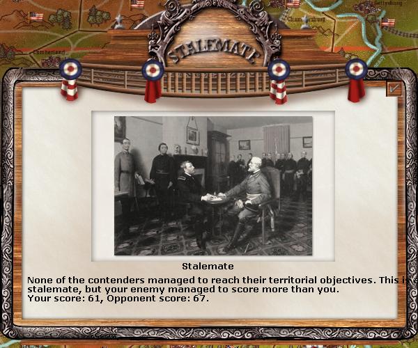 Therefore the South's level of victory is based on their objectives tempered by the VP difference and the North's level of victory is based on their objectives tempered by the VP difference.
