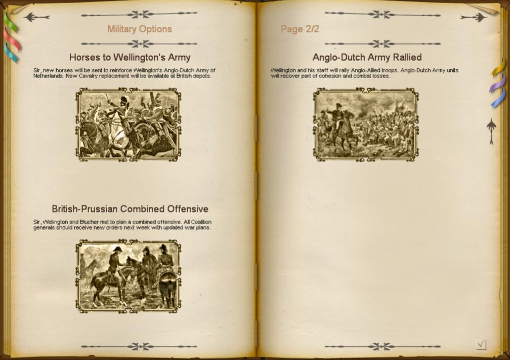 Here's a preview of 1815- The Eagle's Return Scenario Ledger page, (Military Options) as it'll will looks folowing the introduction of Nikel's pictures.