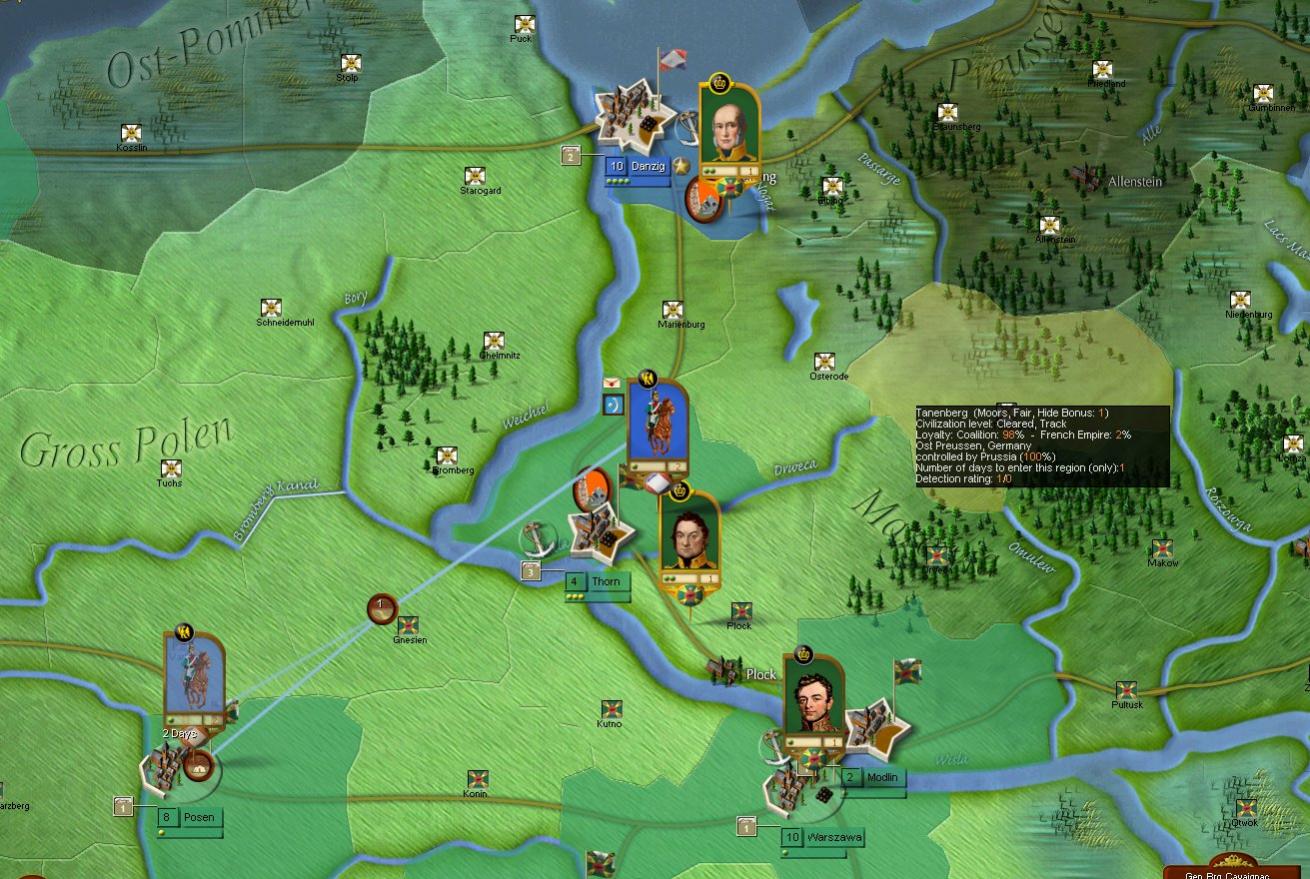 Sin embargo al aproximarse a Hamburgo, las tropas de caballería se encuentran con la desagradable sorpresa de que están llegando refuerzos de un contingente ruso de más de 10.000 hombres. Su objetivo parece adentrase en la ciudad lo antes posible, por lo que a pesar de nuestra inferioridad numérica, conseguimos una victoria táctica al cargar sobre ellos y aniquilar dos regimientos de infantería al asalto. Sin embargo el objetivo estratégico de capturar la ciudad lo antes posible no se ha conseguido, lo que puede traer serias consecuencias en el futuro, una vez que se pertrechen en la ciudad será más difícil tomarla al asalto