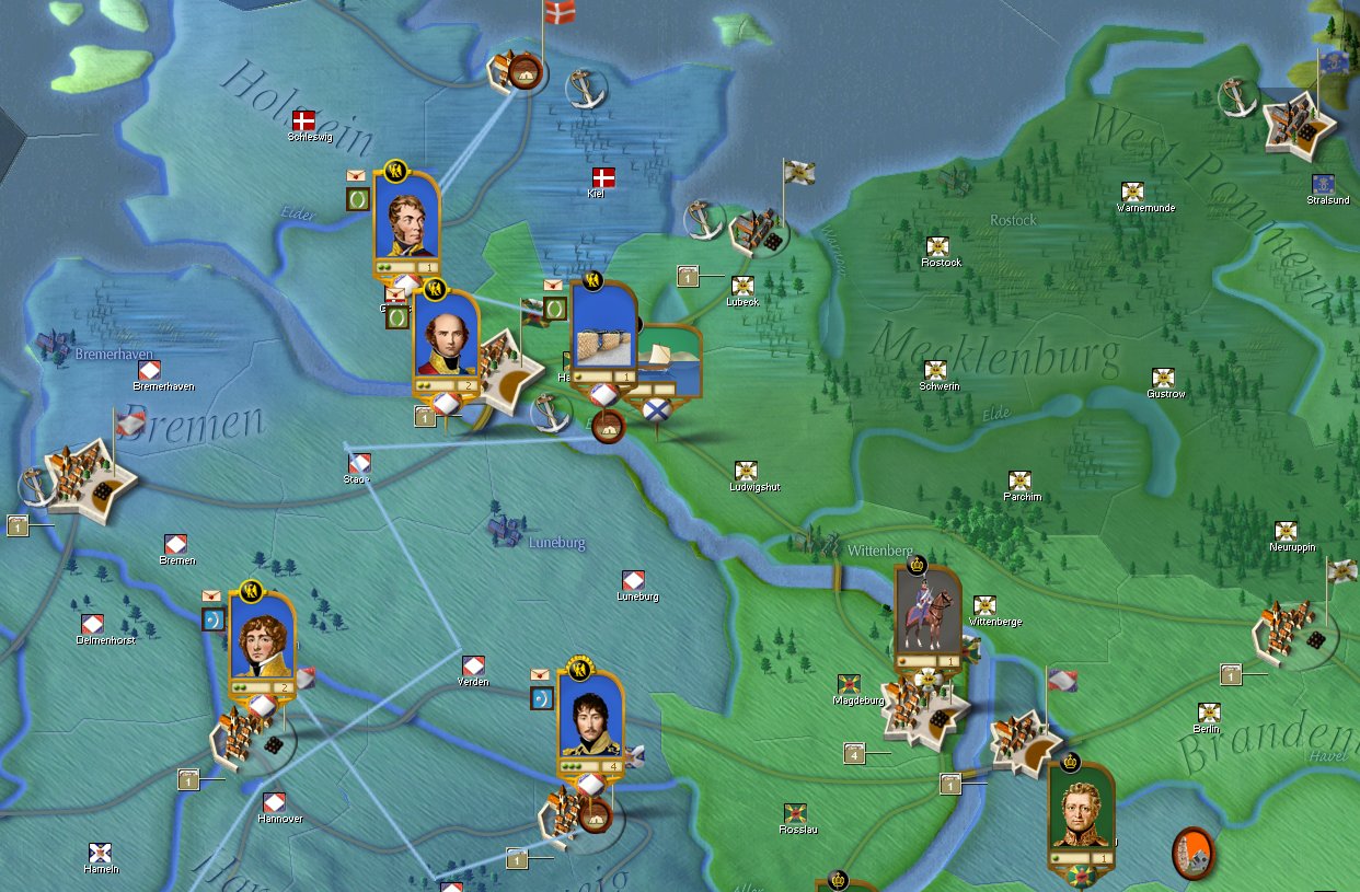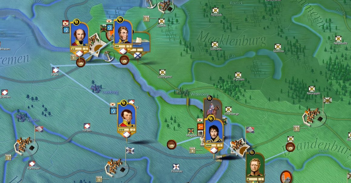 El cuerpo de Vandamme se dirige hacia Hamburgo. El grupo principal del ejército del Elba ha comenzado su avance, deberá tomar Magdeburgo y cruzar el Elba hacia Berlín :neener: