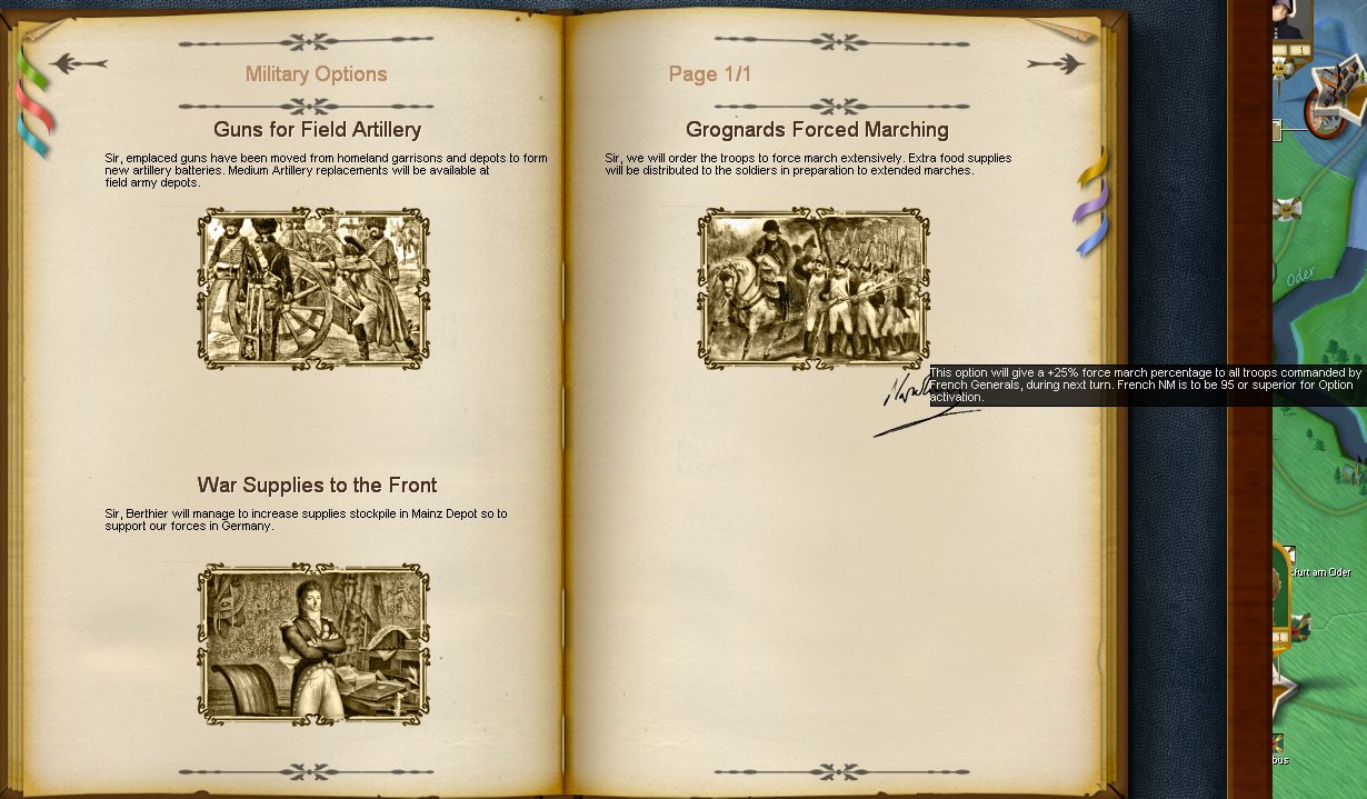No hay novedades tras la derrota de Hamburgo, las fuerzas son insuficientes para capturar la ciudad a pesar de la artillería del fuerte capturada :( Nuevo cuerpo disponible, mando de Vandamme, las opciones son dirigirlo al norte para apoyar a davout (1), o al este para reforzar el ejército del Elba (2) en su avance sobre Magdeburgo y si es posible Berlín (5)