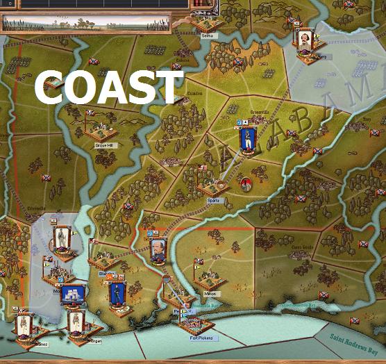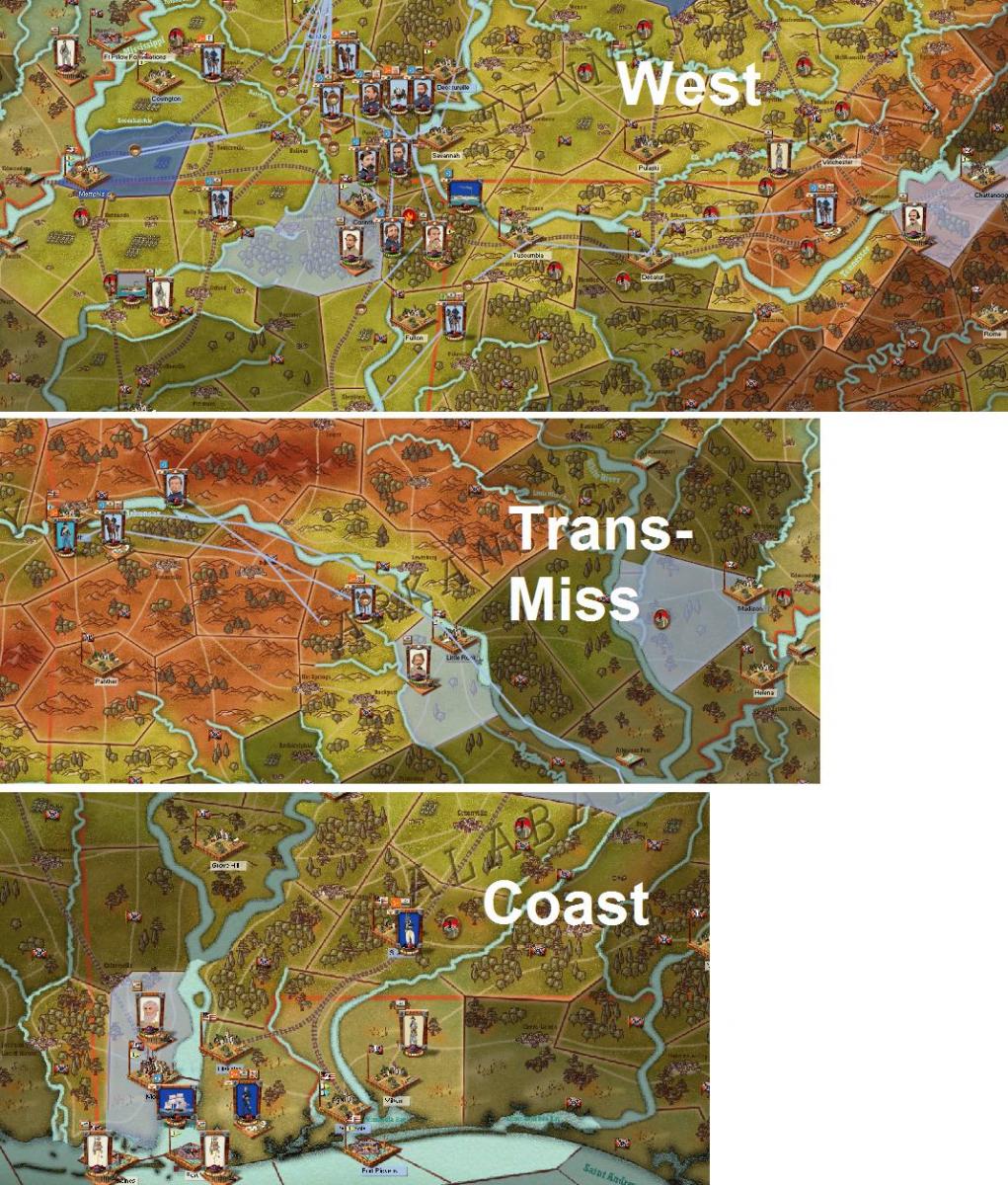 Sigel's command in transmiss was hammered by the weather and is attempting to retreat before combat. USA elements in the coastal regions are starving to death.