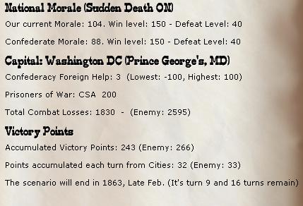 My strategy was to destroy CSA field army first, then go after the cities, but it was a mistake, it is better to go after the cities first.