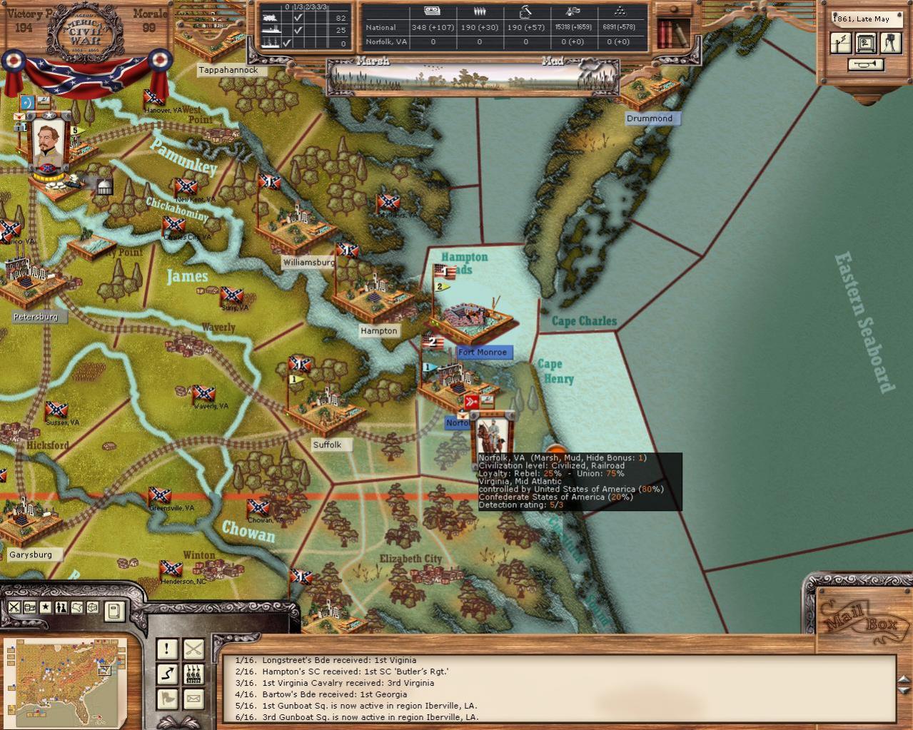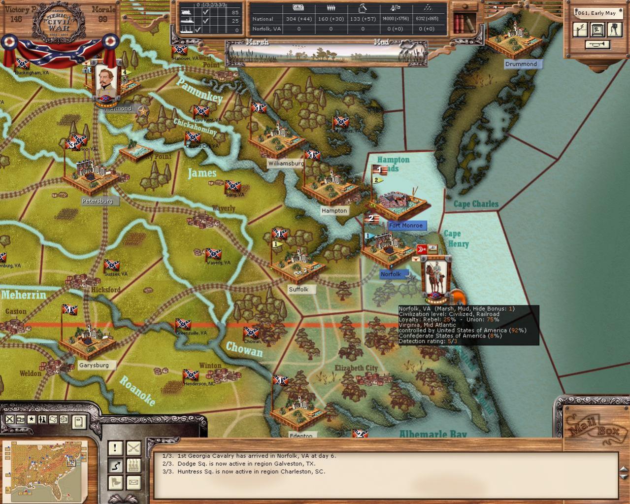 But the rampaging lone cavalry regiments blowing tracks and taking empty towns up to Minessota or down to New Orleans are a much more "noticiable" problem IMHO ;)