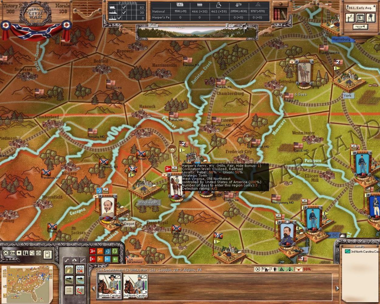 here is CSA cav moving onto York 100% USA loyalty after taking Harpers Ferry