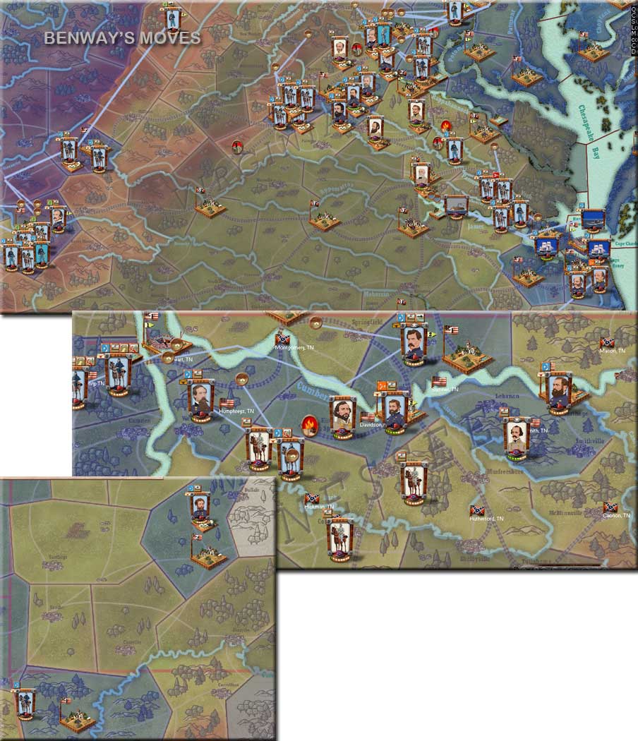 Thanks all for your comments, but I must say that Benway seems to me a great player and I was commited to try the Washington maneouver because the Benway´s agressive play was being very dangerous for me, with a great army positioned two zones of Richmond and Fort Donelson, Nashville and Norfolk at federal hands and only at october61!!!!!!
