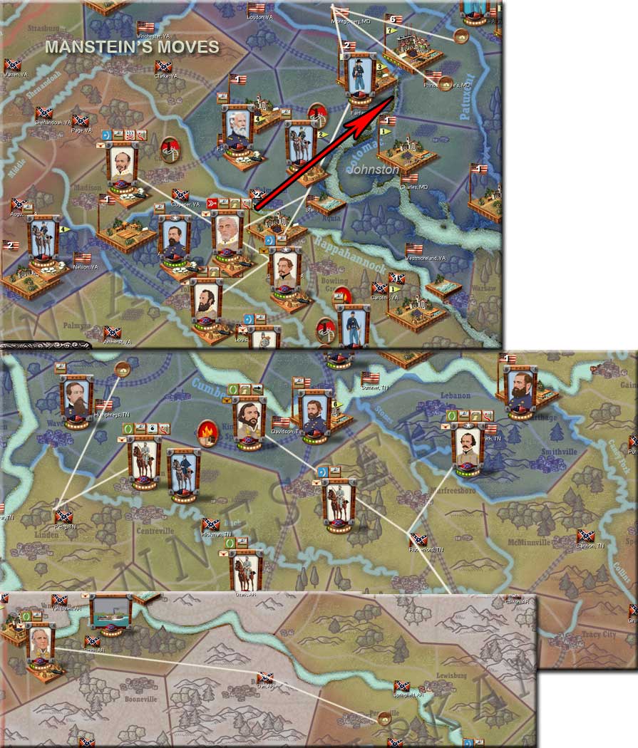At West, the Army of Tennesse (2 divisions) and the Hindman divisions retreat to Pulaski depot, where is the Hardee divisions and I could form an army with 4 divisions for fight by the Nashville control.