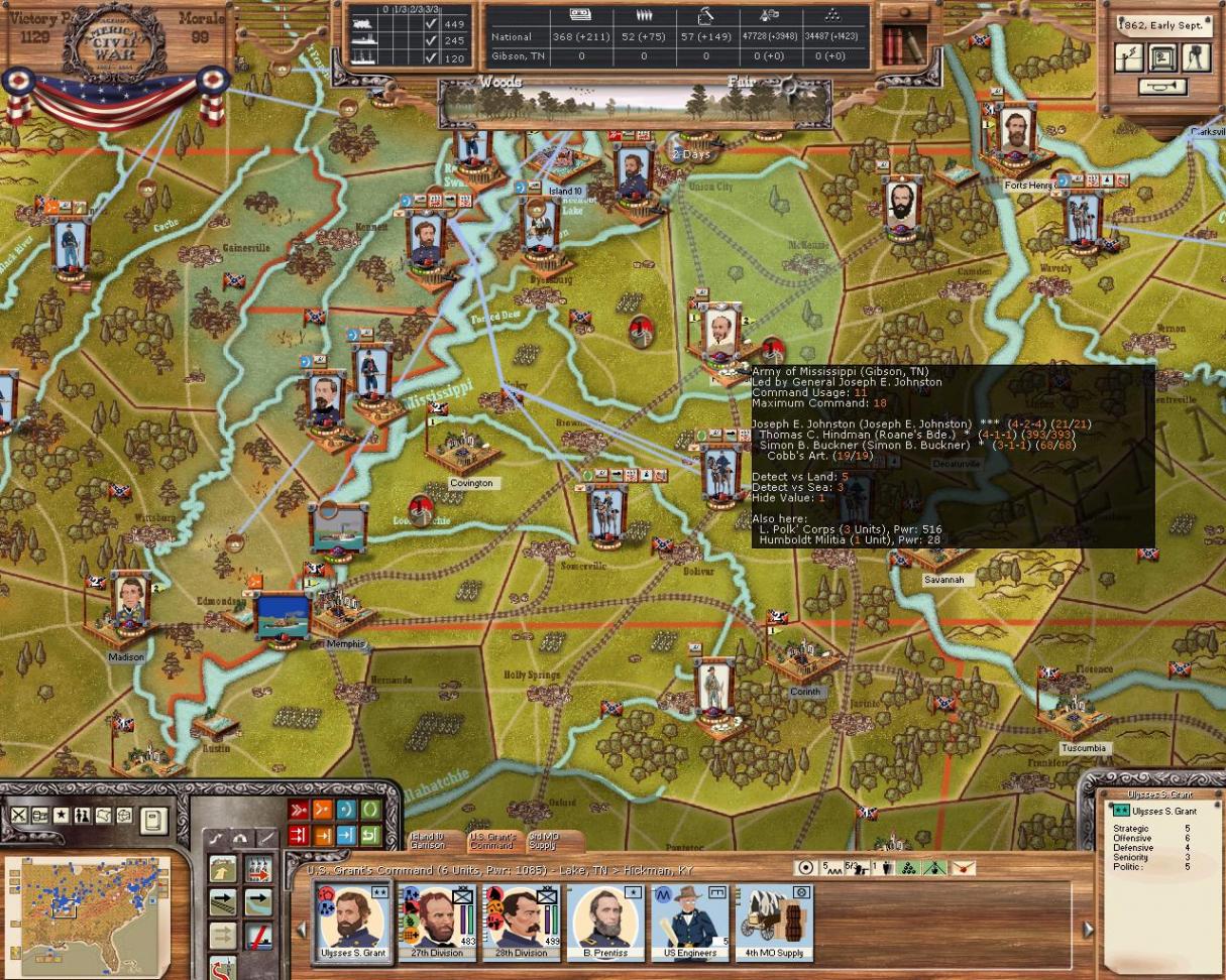 As such, a fleet under Porter willmove down river and attempt to shake out the rebel fleet as well as to blockade Memphis. I also want to get ships down there to stop and reinforcements moving along the river from reinforcing Hardee and Price in Arkansas or relieving Little Rock.