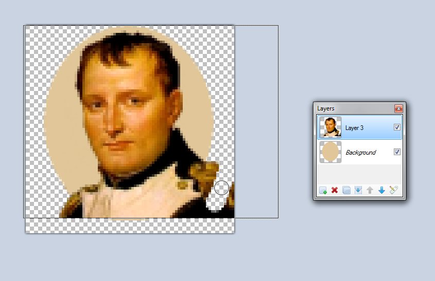 Open the picture of Napoleon in Paint. To work better, as it is a full body picture, cut the head and neck using the rectangle select tool. Now with that selected, edit and paste in as new image. You will have something like this. You have to look carefully at the original graphics so that only are shown the head and the neck