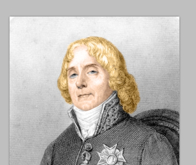 Now load the picture of Talleyrand on Photoshop and let's add the different colors. You will need some trials and errors to get a color you like. The color eplacement tool has the advantage of preserving the shadows, but also the color you add is not exactly the same you see, it is somewhat washed