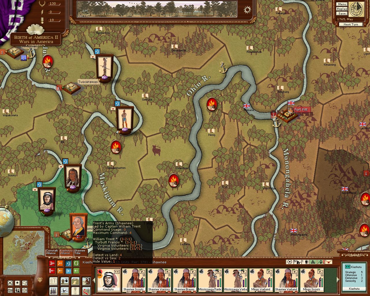April/May '66. The British continue their rapid advance and Hopkins takes control of the French fort de Chartres. Pontiac has certainly been caught napping!