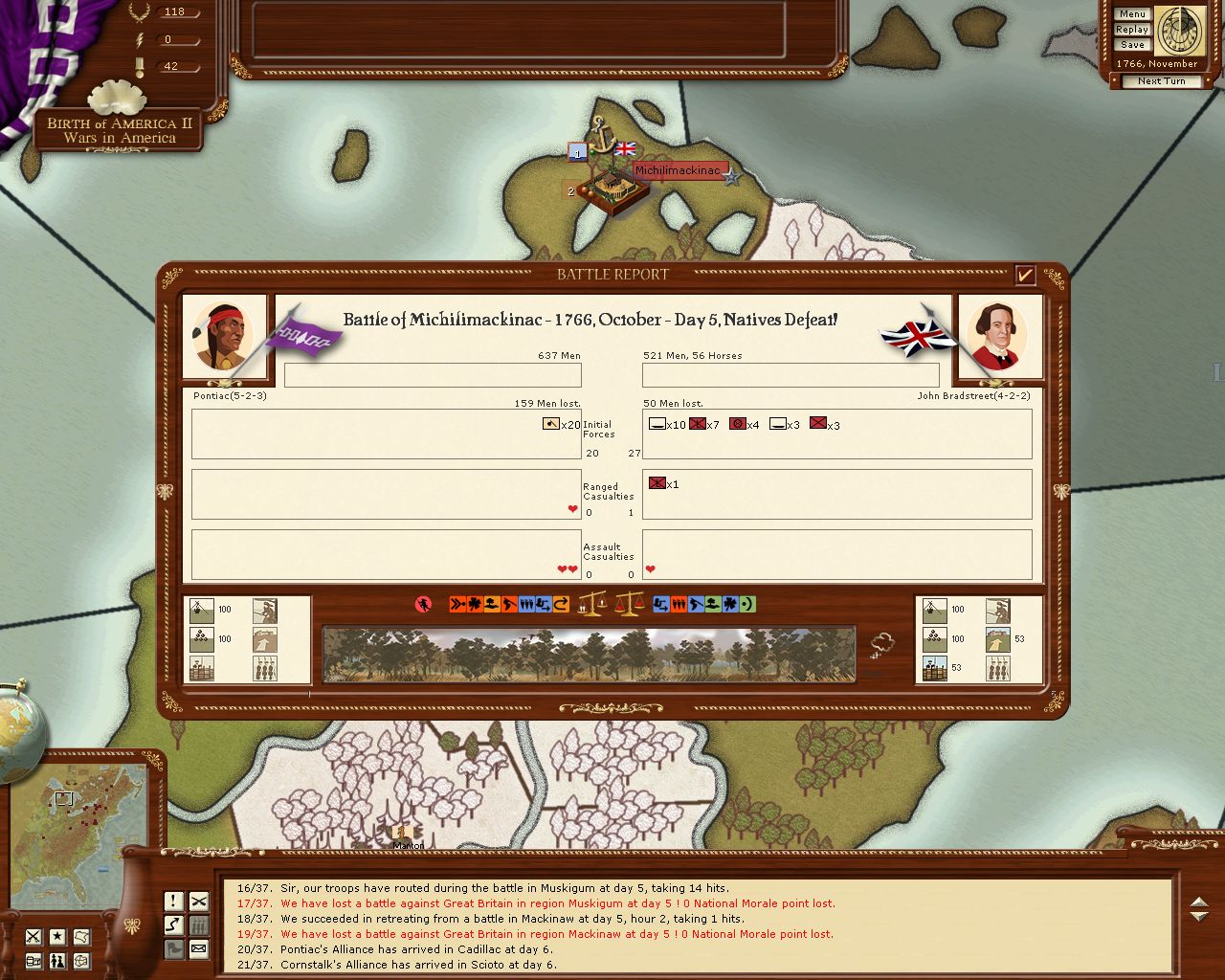 [SIZE="4"][color="Red"]All out assaults against last native strongholds, while Pontiac is away besieging Fort Michilimackinac[/color][/size]