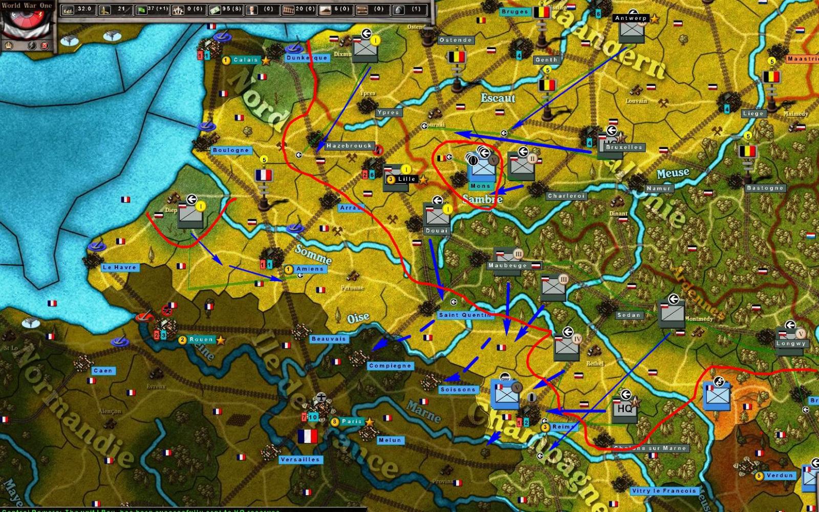 The BEF now has forces, of an unknown amount, in Belgium and more in Arras. It appears that France is attempting to form a main line along the Somme.