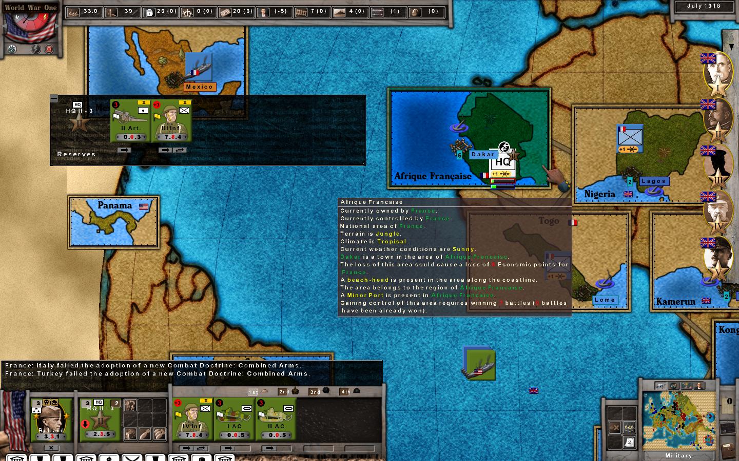Random wrote:Exactly, I would just like to know why! I can see President Hughes (he beat Wilson in the 1916 elections) keeping the troops closer to home but sending them to a remote French colony is just plain wrong.
