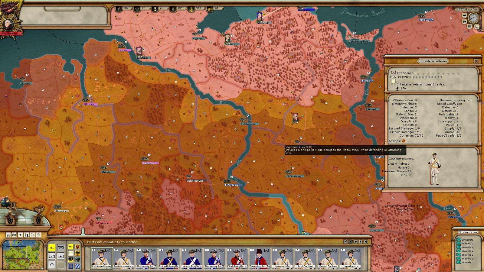 Well i think as this game has a little smaller geography than american civil war game(more concentrated cities or forts i guess) maybe its not necessary to build forts or fortified camps. But without the knowledge of Entrenching levels in rise of prussia i saw that its maximum value is 2 with artilery in game. as i read the wiki of american civl war game it says it can go up to 8 or something and adds that defence is powerful,does this mean to play defensively not important in rise of prussia or is it for game balance?or for historical accuracy?(im still trying to understand game mechanics) maybe it can be better at if we raise to up to 3 or 4 maximum so the units defending a region will be more effective in combat in expense of wasting precious turns.