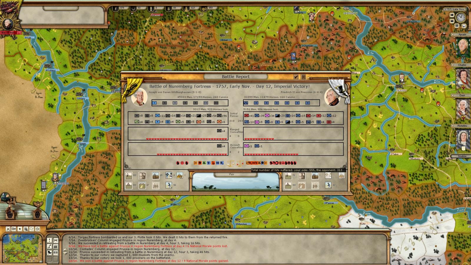 Baris wrote:Does that screenshot mean (Austria lost 9000 men while Prussia 5000) I lost 9 NM for losing more men.? If thats the case then Prussia should have lost some NM.