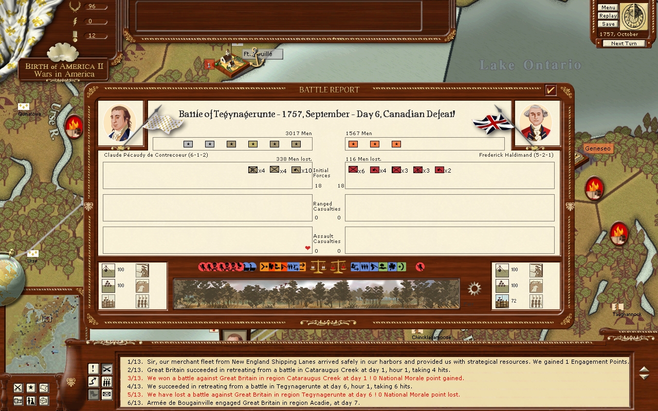 Heh, When I execute the turn, Prevost wins at Plattsburg, Wilkinson retreats to Ticonderoga!