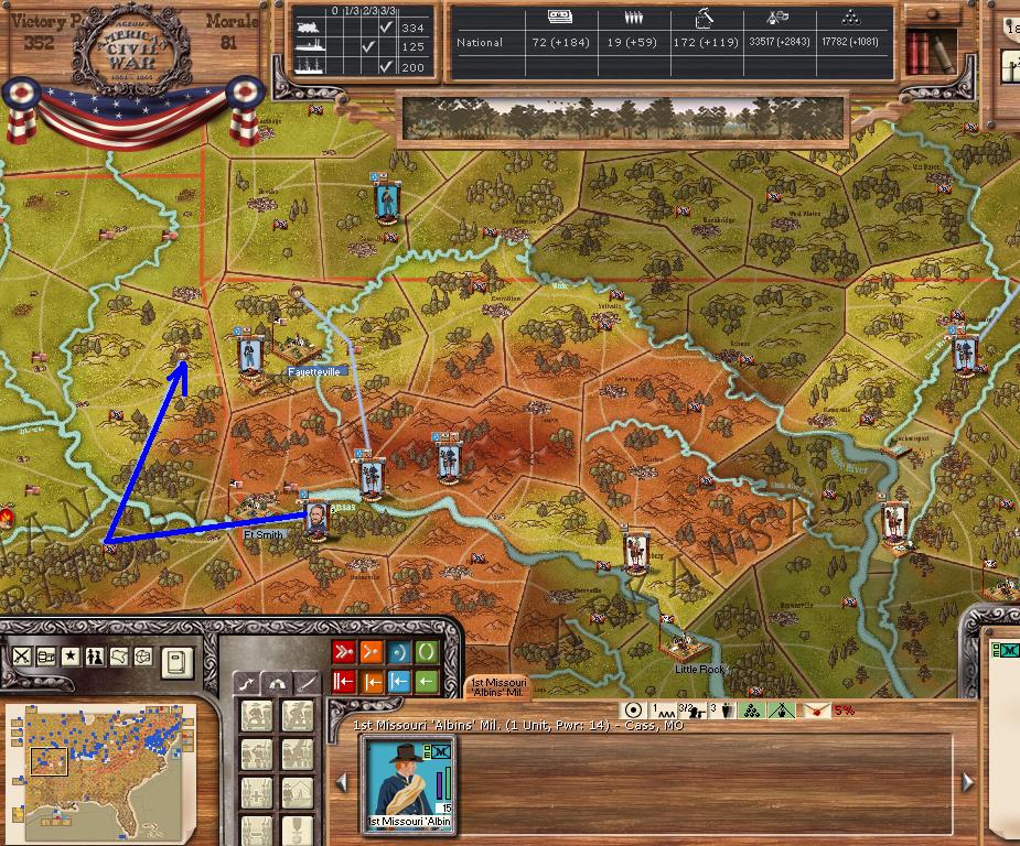 Orders - Calvary assaulting Ft. Smith, Lyon assaults Jefferson city. Not much other movement. It appears that he is waiting for the main armies to unlock.