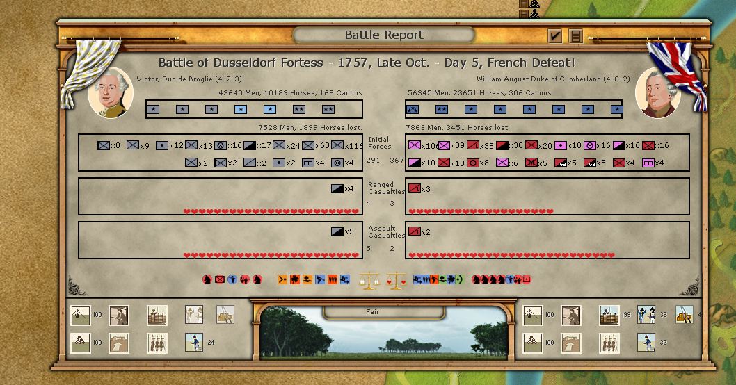 In replay i saw, that my French army advanced from Aldenberg to Dusseldorf and opponents army retreated from this location. So there is final disposition.