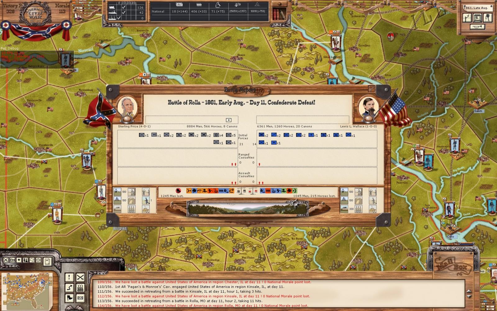 Hardee loses to Grant. However, Hardee has a division as well as Mculloch in the area, so this should be enough to keep Grant busy. He left Columbus KY undefended for the most part, but I'm not going to jump at it right now. Grant isn't moving far.