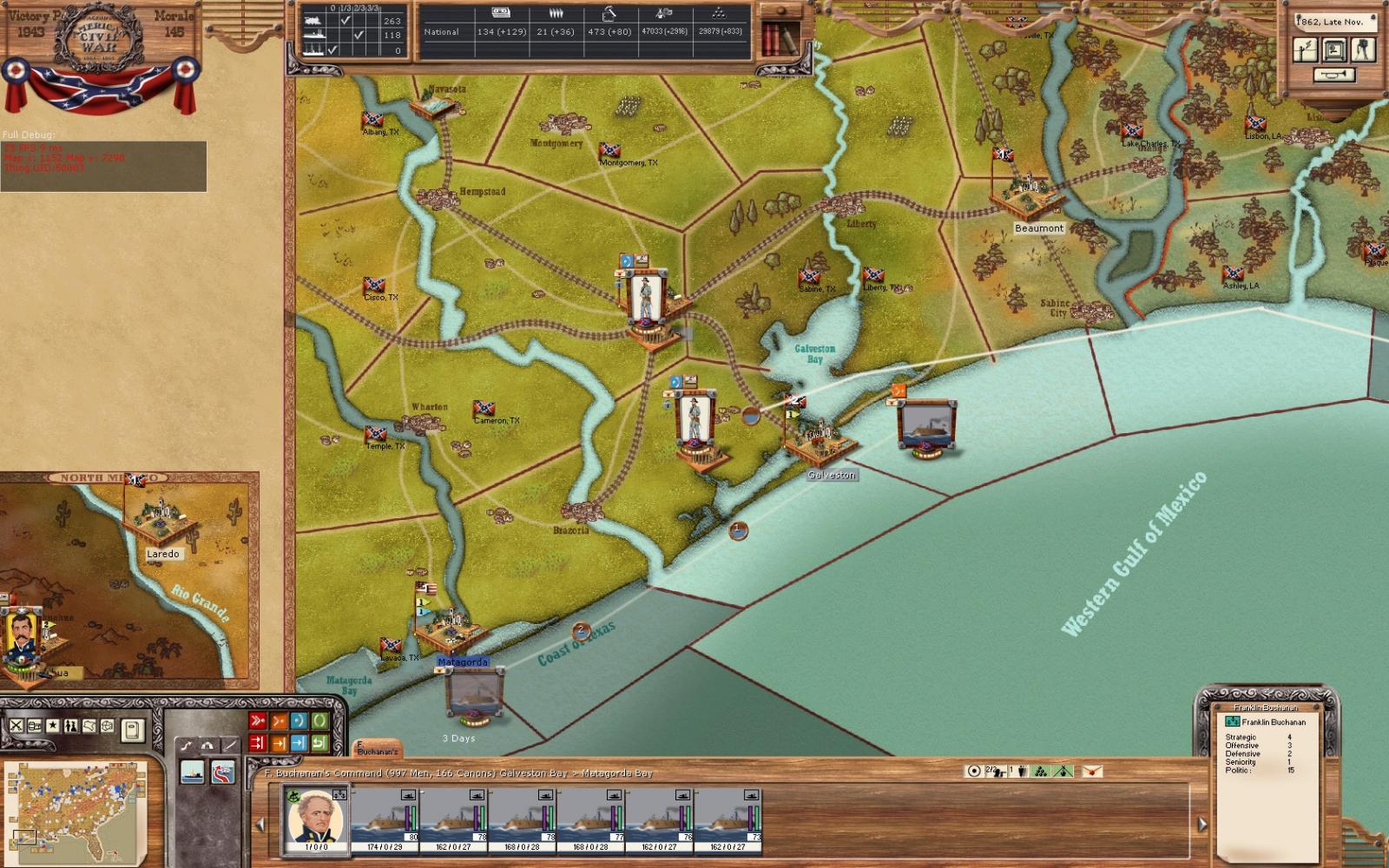 He landed a force in Matagoria, Texas. I don't have any forces there to deal with this, but am going to put together a small force rapidly. Hopefully I can deal with Fort Pickens quickly and divert those three divisions to deal with this new beach head.