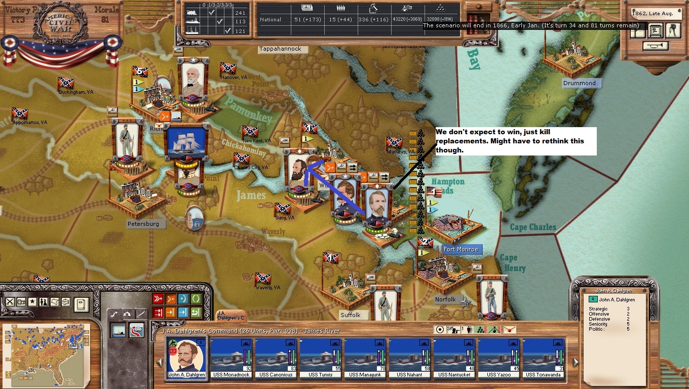 One can only hope that these inane penalties for not attacking, (really, papers scream over no 1862 offensive? Not in any history I ever read. And what, the invasion of Texas and Florida wasn't an offensive??), are removed in the hoped for AACW 2......