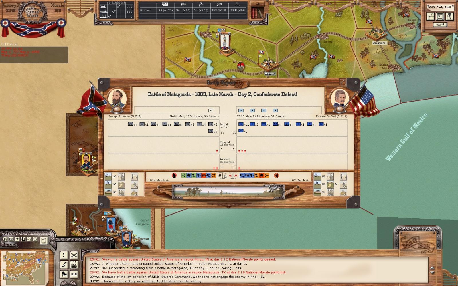 veji1 wrote:wow. I just read the reports at the bottom of the screenshots and it looks like you have made 38 000 prisonners in western Kentucky in this campaign, with 36 000 of those in Paducah. This is a major disaster for your opponent, you just basically did to him the equivalent of capturing Fort Donelson and Vicksburg at the same time !!