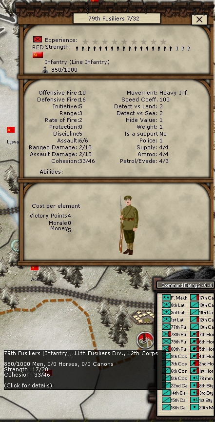 5) Red leader shortage: As opposed to the Southern White and Siberians, the Bolshevic suffers from a severe shortage in generals. The player simply cannot afford to loose any generals in combat (losses via events already are severe enough).