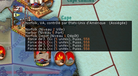 Alors si vous êtes 2, il suffit de demander au joueur US (pour la bonne cause du debbugage) s'il a 5 piles de Dix à Norfolk ou pas...si c'est le cas, la cause est un bug event...si c'est pas le cas, il y a un bug tooltip..