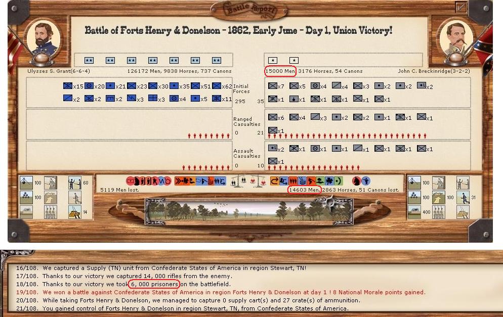 Ethan wrote:As you know, normally, the total number of enemy troops does not coincide 100% with the number of casualties added to the number of prisoners. That is something known by all. But IMHO this is too uneven (15.000 men =? 14.603 casualties + 6.000 prisoners). According to this, 20.600 men would have intervened in the battle... :blink: