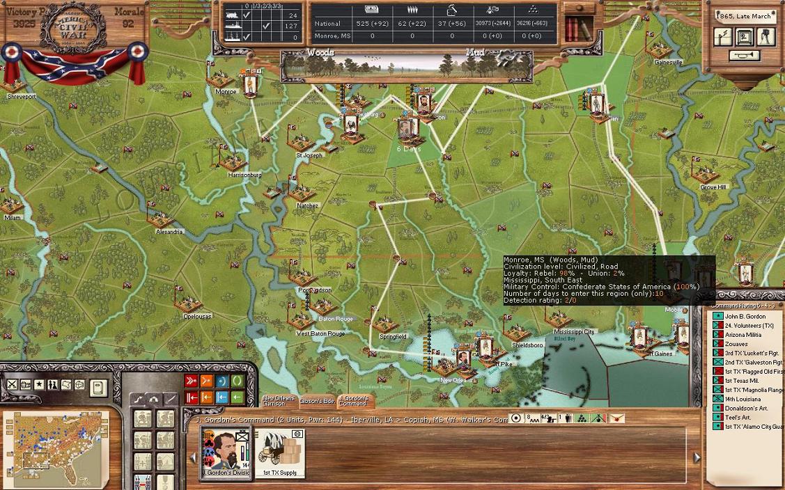 No movement in Texas. I’ve gotten rid of Armstrong’s Division in Dallas to free it up for use elsewhere.