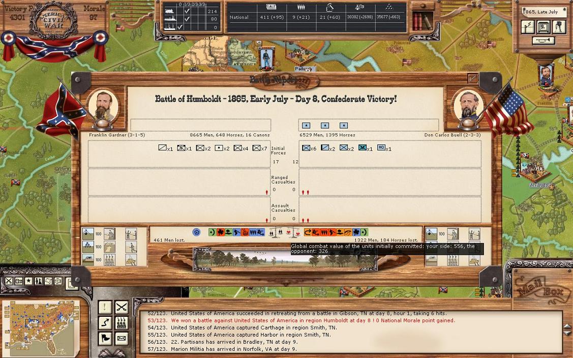 We'll know a lot more after the next turn on the Union's prospects. Can the Union break through Henry TN, and will General Bee and General Hampton hit Foster and Sherman hard. Should be exciting!