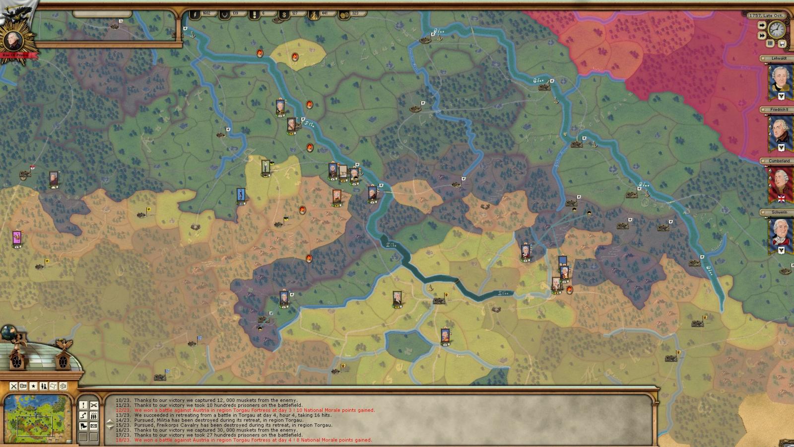 This was a very perceptive and important observation, which as far as I can tell seems to have gone unnoticed. The Seven Years War should not resemble the Great War, with lengthy and costly offensives, and yet because of this cohesion-loss problem, it's not uncommon to see a series of Verdun-style battles in a single turn. In a recent test game I observed six separate set-piece battles in a turn, resulting in the entire destruction of a major field army - utterly implausible for the period, but hardly uncommon in the game.