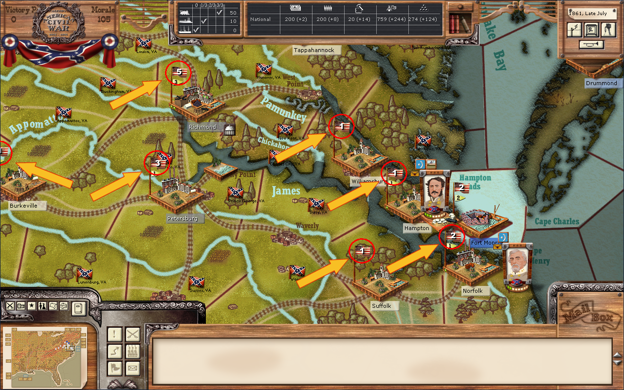 The CSA, provided that the Union defences prove no problem, can likewise threaten to take ANY similar Union town at the entire east coast by mustering as far as New Berne, NC.