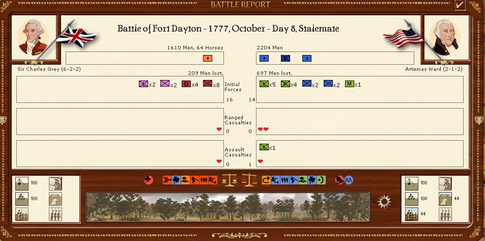 Prescotts brigade has marched to attack Ft Stanwix but is repulsed,He will now await the arrival of the German Rall's brigade and attack next turn.