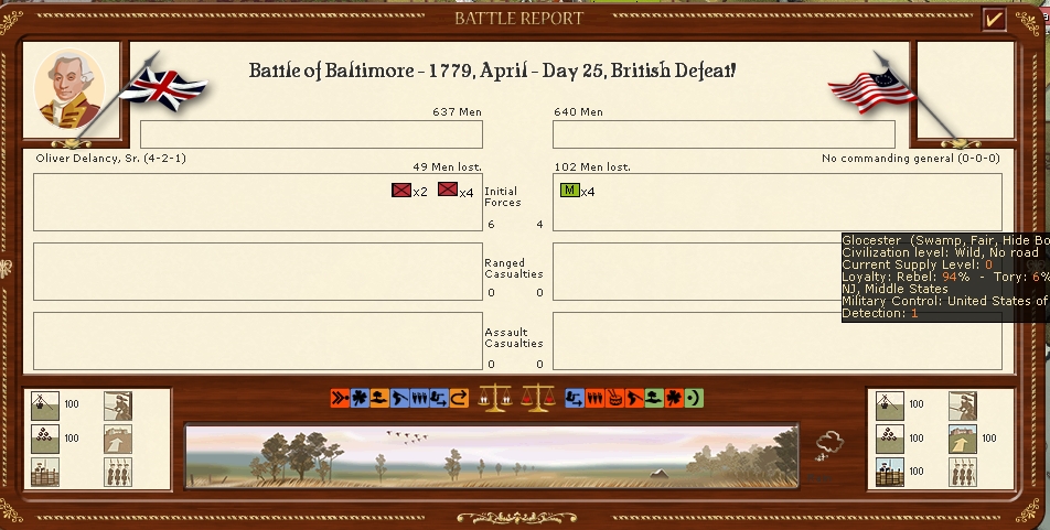 Sir Oliver DeLancey captures Baltimore after three month's of trying,I will move DeLancey back to NewEngland now so he suffers no penalties.