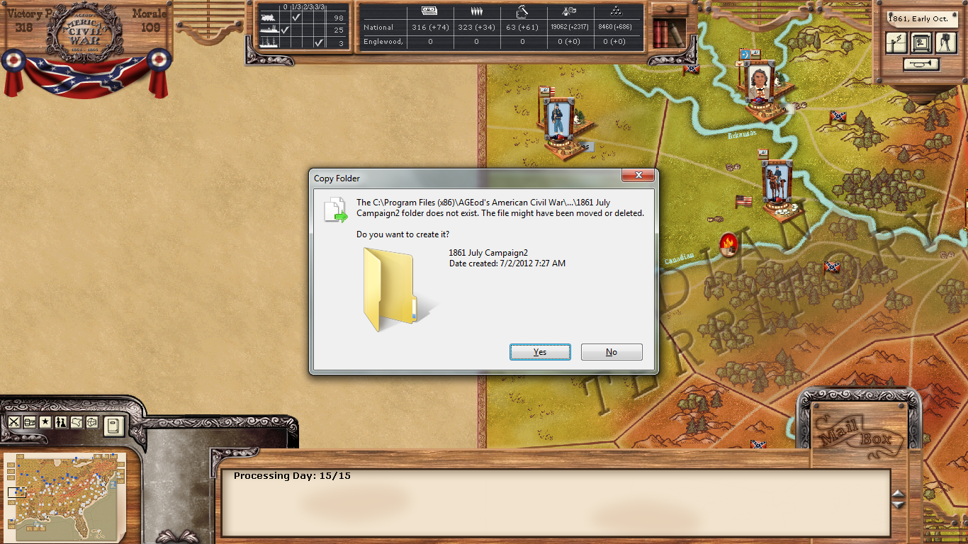 The AI operates normal until I get the file has been moved or deleted, do you want to recreate it. When I select Yes, the same window reappears. It does this until I select No. After this the AI stops working. I have checked my admin rights to the fill and I have full control. I have also added the folder to the main director, save directory and the current game directory but after each turn the window reappears with the same message.