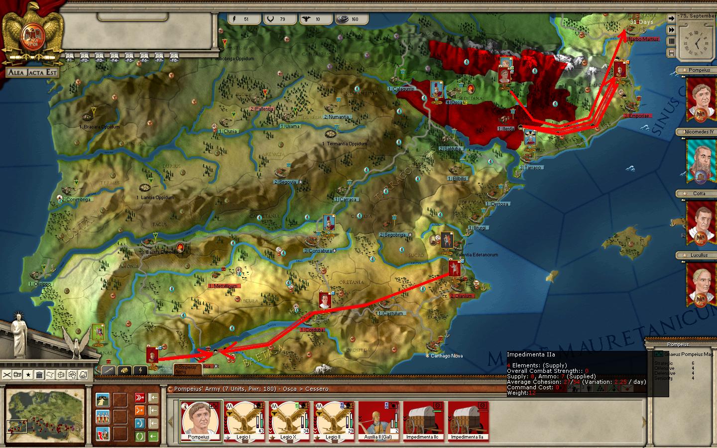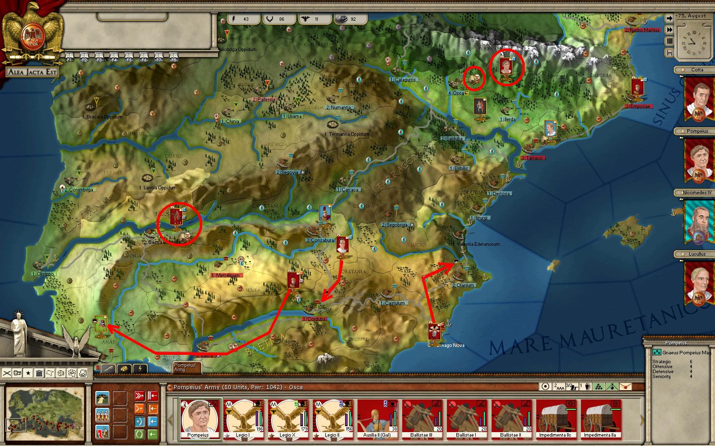 All this leads me to a 57 NM at turn 8, while Sertorius is at a nice healthy 135. This is no way to win a war. I need to do something to correct this NM imbalance, but what?