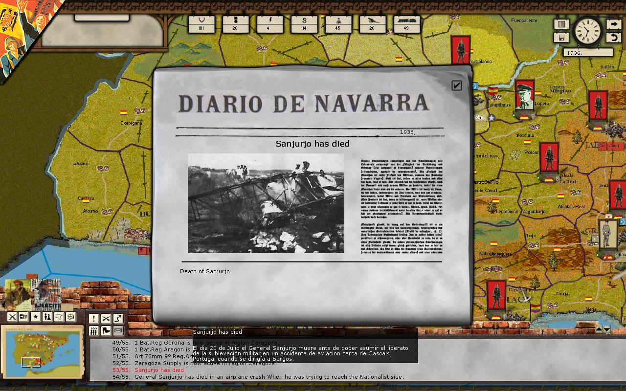 Muy bien. ¿Qué características tiene Durruti? ¿El color de fondo es por ser anarquista? Si éste tiene dos estrellas, ¿quienes van a tener tres en el juego, aparte de Franco? Bonitos gráficos de aviones, por cierto.