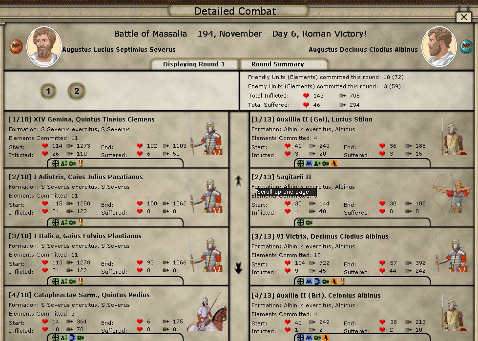 Yes, you can check looking at 3rd and 4th screenshot, top-right area, total amount of losses/hit for each round. i took 46 losses in 1st round and 28 losses in 2nd round. In the global report i see i took 214 losses. What i see is not omission but WRONG data. The only explanation is that the difference ( 138 losses, double of the combat losses) are related to mine units routed and pursed....but it's realistic that losses by pursuing are 64% of the entire amount of losses, for the winner of the battle ?