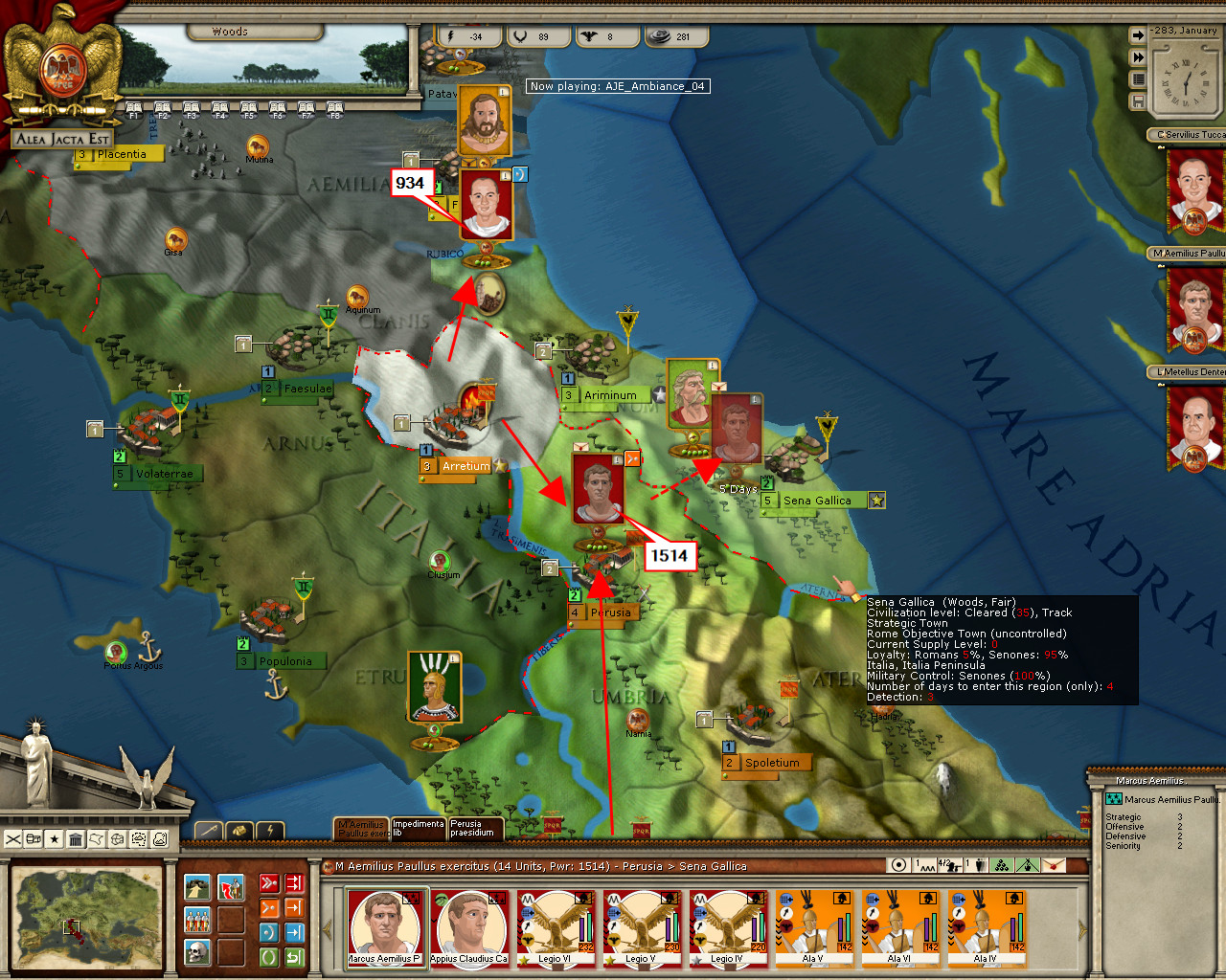 We do build some new allied cavalry in Rome, however, which should be ready in a couple months, and a supply wagon in Perusia, to help it withstand a Gallic siege if need be.