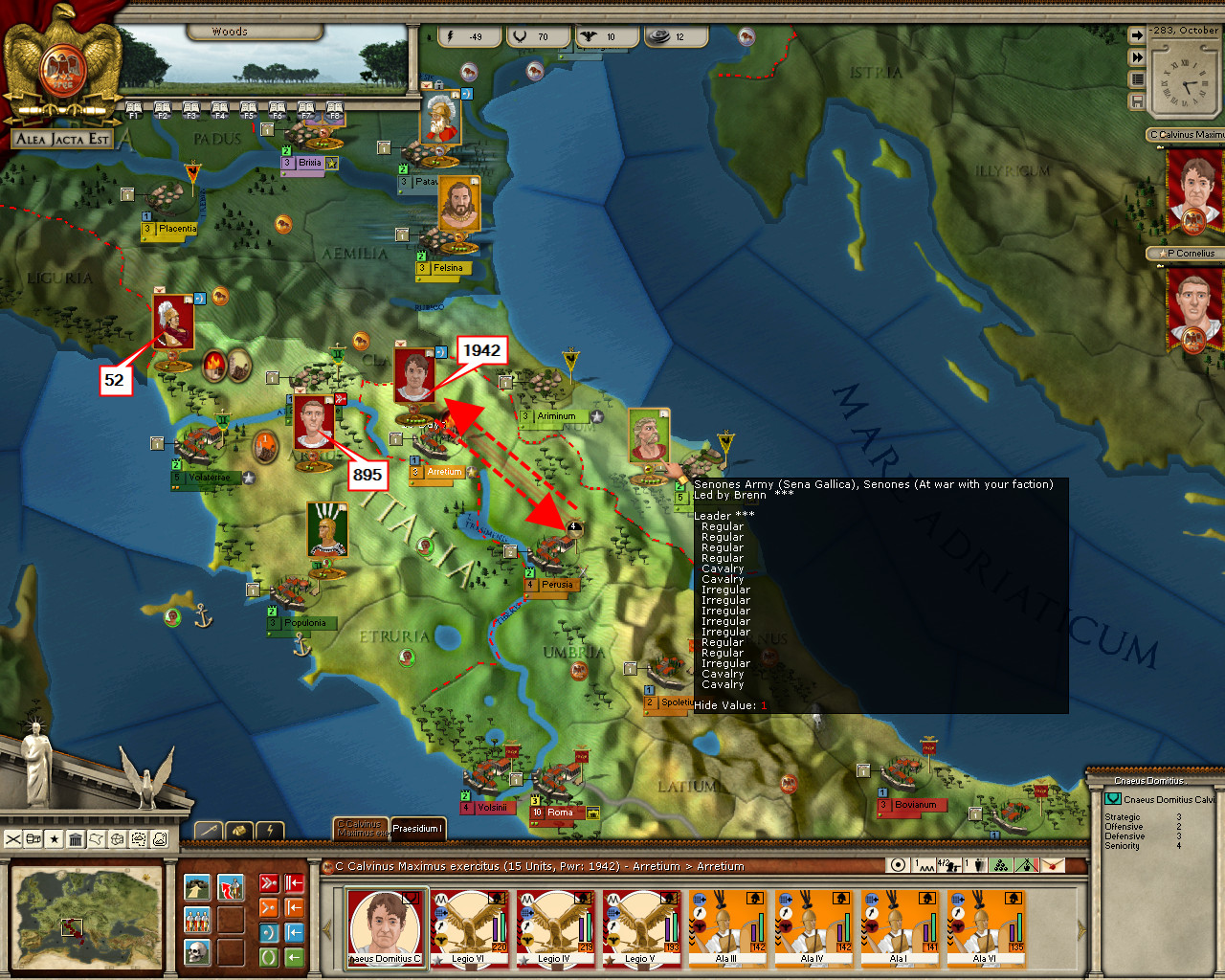 Arretium (controlled by Rome, right on the border with the enemy): 5