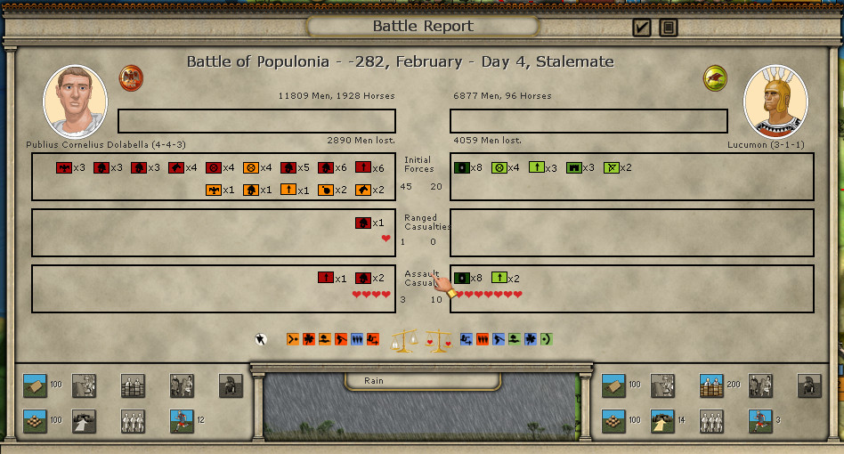 Populonia, wow. 3 battles in which we practically annihilated the Etruscans ... and the game system only rated them "stalemates":