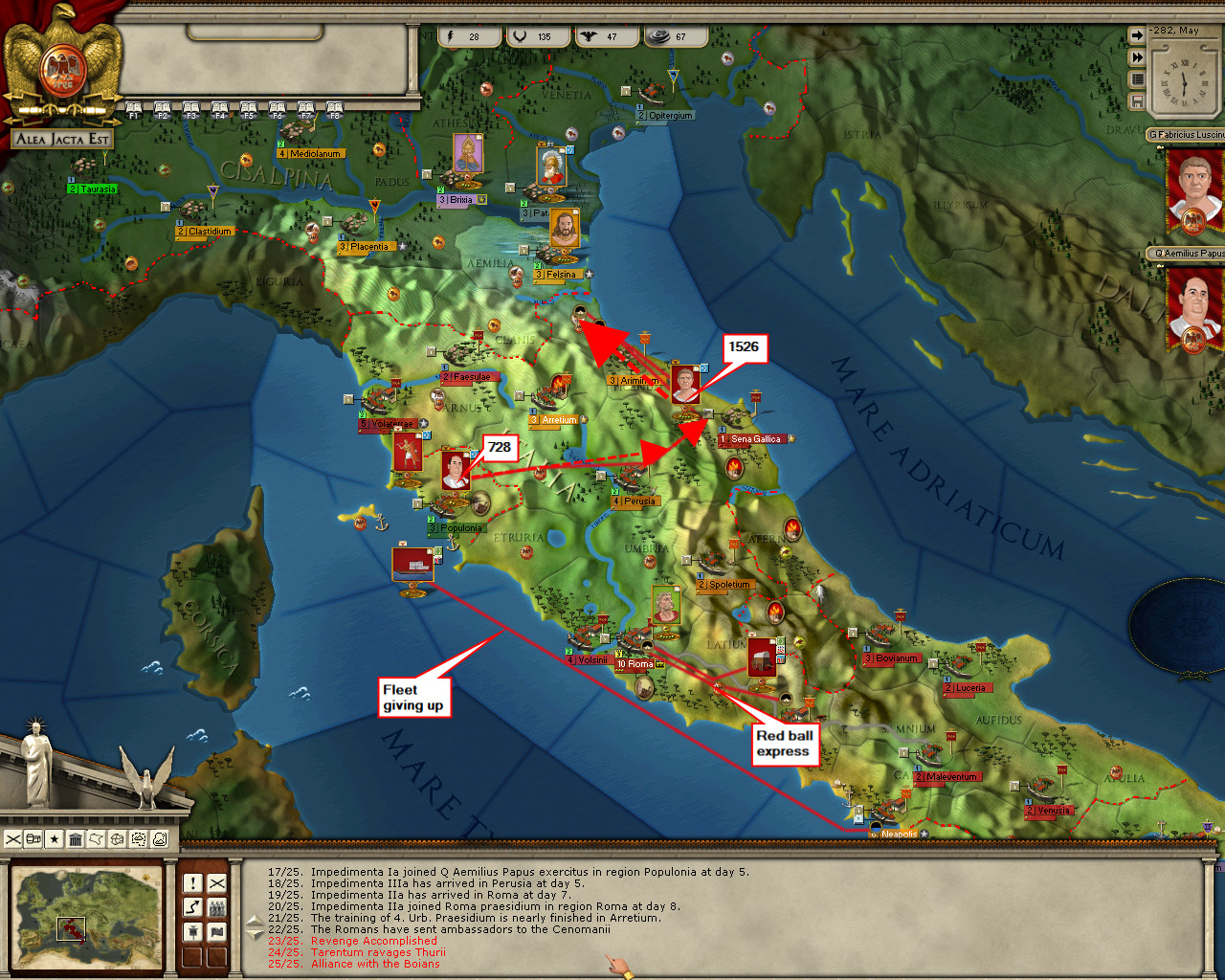 ... but a full one managed to get through from Perusia. It seems like a cavalry patrol was sent by Britomaris south to Casinum, and stumbled across the wagons trying to leave Rome.